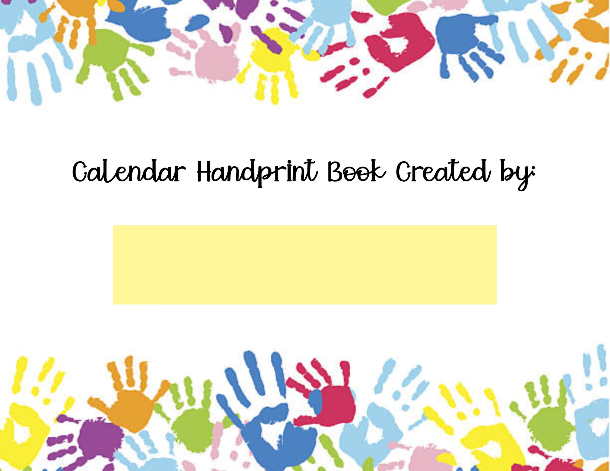12 handprint themed monthly pages coordinated with the calendar page, as well as a cover page, title page and sample page.